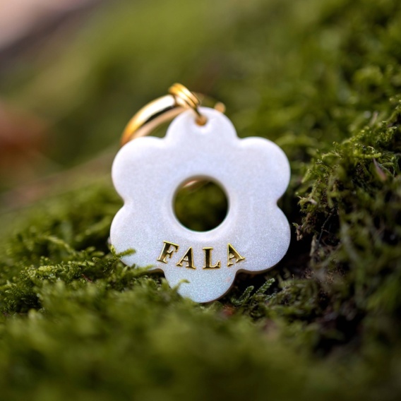 Personalizowana adresówka z żywicy dla psa. Wybierz kształt i kolor wypełnienia, dodaj imię psa. Na odwrocie znajduje się miejsce na numer telefonu – bezpieczeństwo i stylowa ozdoba obroży w jednym. Kolor czcionki klasycznej dobierany jest pod kolor koła do zawieszenia - złoty bądź srebrny. Wymiary i dostępne czcionki są dostępne w opisie produktu.
