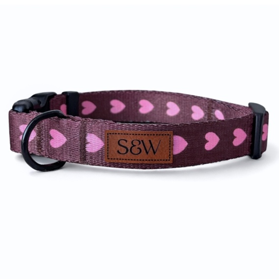 Obroża dla psa w serduszka, brązowa, regulowana z klamrą – Psiamore