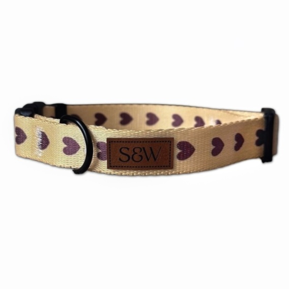 Obroża dla psa w serduszka, kremowa, regulowana z klamrą – Psiamore