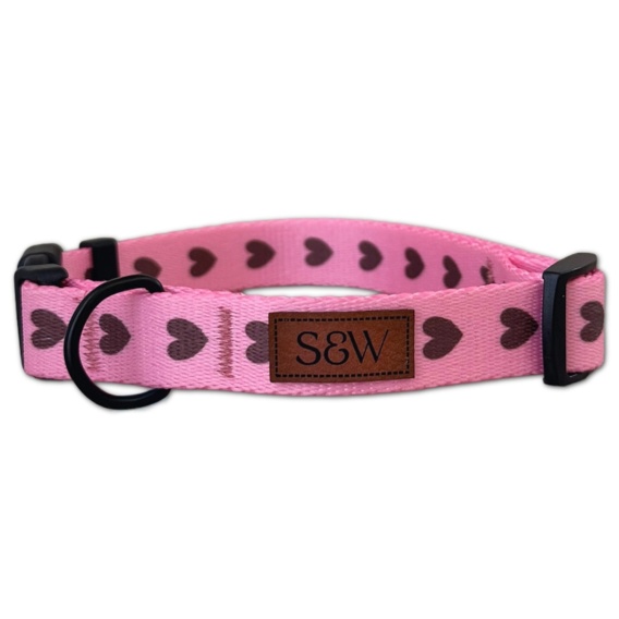 Obroża dla psa w serduszka, różowa, regulowana z klamrą – Psiamore