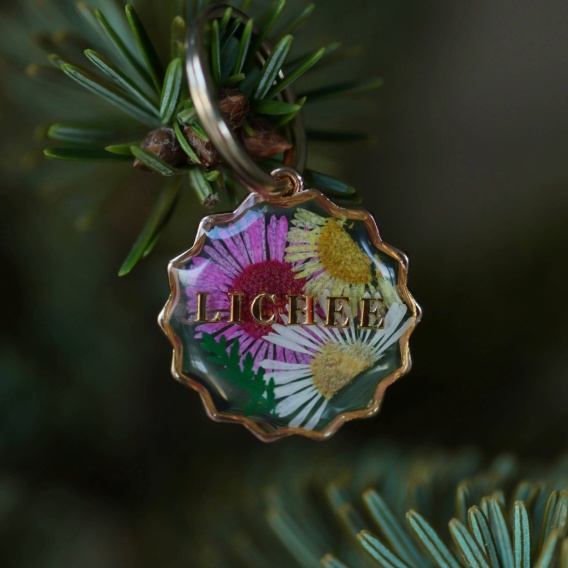 Adresówka dla psa z żywicy "Kwiaty" – personalizowana w złotej obwódce