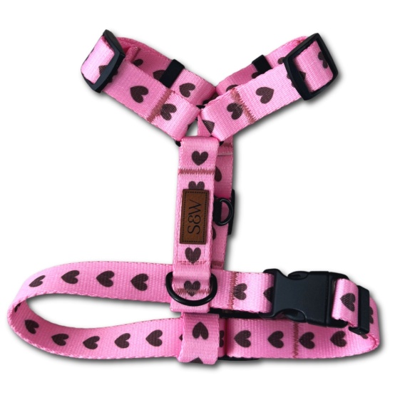Szelki guard dla psa w serduszka, różowe, personalizowane – Psiamore